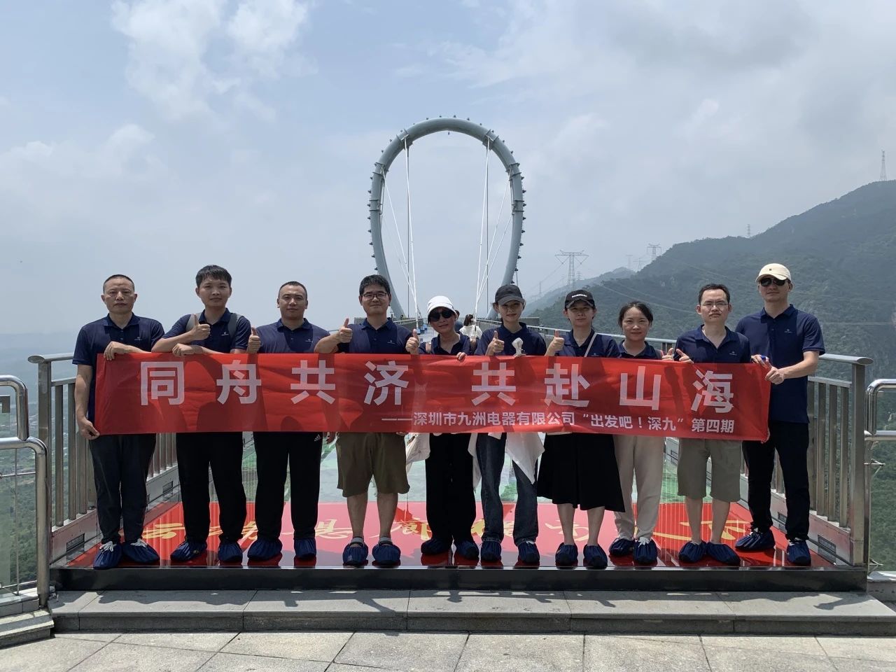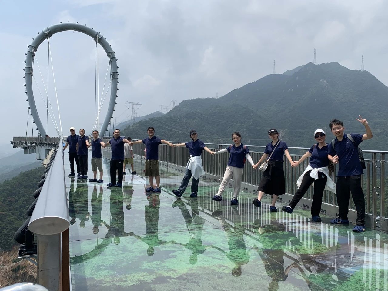 在藍(lán)天白云的映襯下,玻璃棧道宛如一顆璀璨的明珠鑲嵌在翠綠的山林之中;人事行政部的同事們毫不畏懼,攜手向前,繼續(xù)挑戰(zhàn)極限,走在玻璃棧道上,隨著每一步的前行,山谷與綠樹都在視野中展現(xiàn)得如詩(shī)如畫,仿佛置身于云端,讓大家感受到了大自然的壯麗恢弘與人類的智慧結(jié)晶。