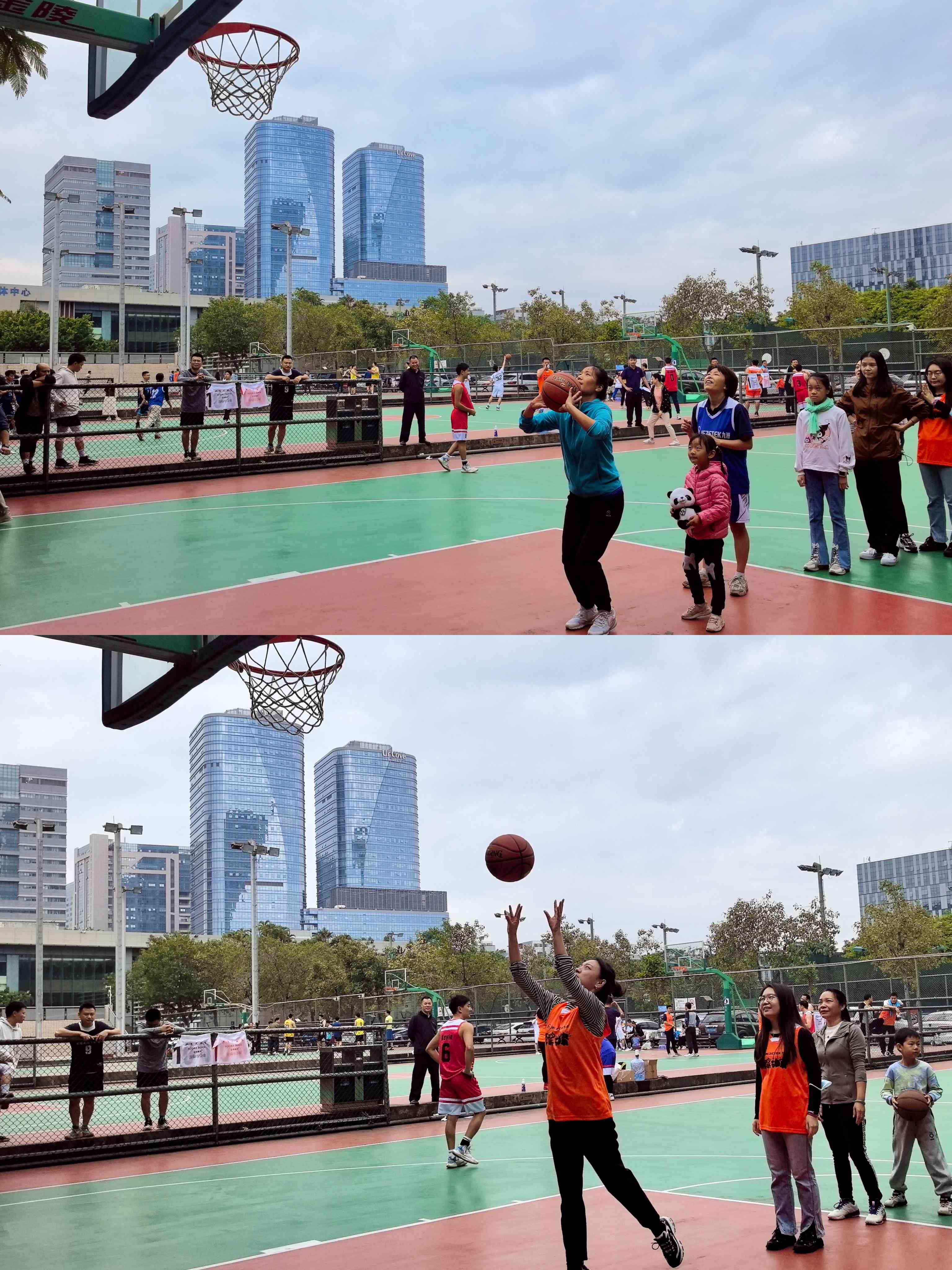 場上的女神們英姿颯爽、躍躍欲試、認(rèn)真把握每次投籃機會,堅毅的眼神鎖定前方,兩腳蹬地,雙手發(fā)力,伸展腰腹將球拋向籃筐。